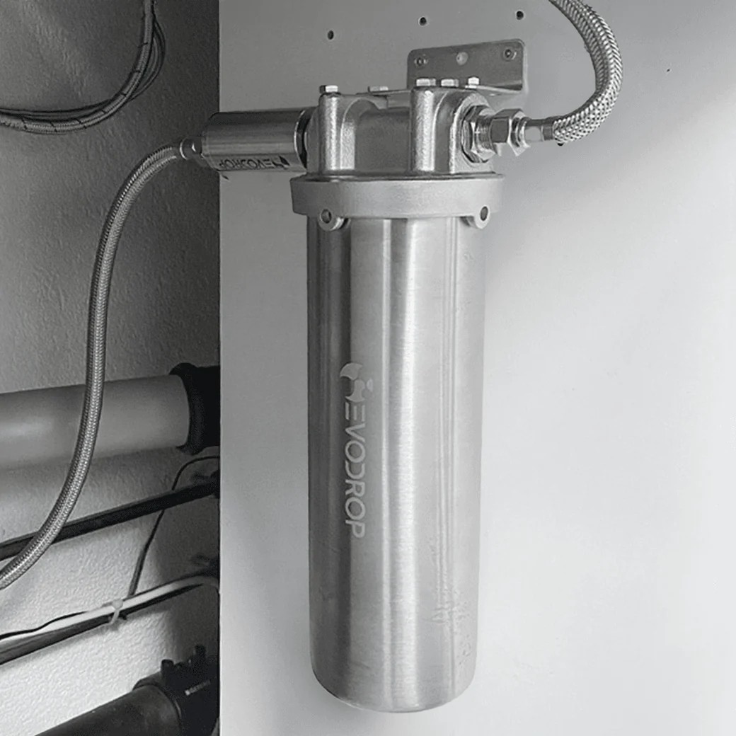 EVOdrink est un système compact de filtration et de dynamisation de l’eau, conçu pour s’installer directement sous l’évier. Grâce à sa technologie d’adsorption avancée, il élimine plus de 99 % des contaminants présents dans l’eau du robinet : microplastiques, pesticides, métaux lourds, PFAS, bactéries et virus. Ce modèle est une solution fiable et économique pour profiter au quotidien d’une eau pure, douce et agréable à boire, sans électricité et sans rejet d’eau.
